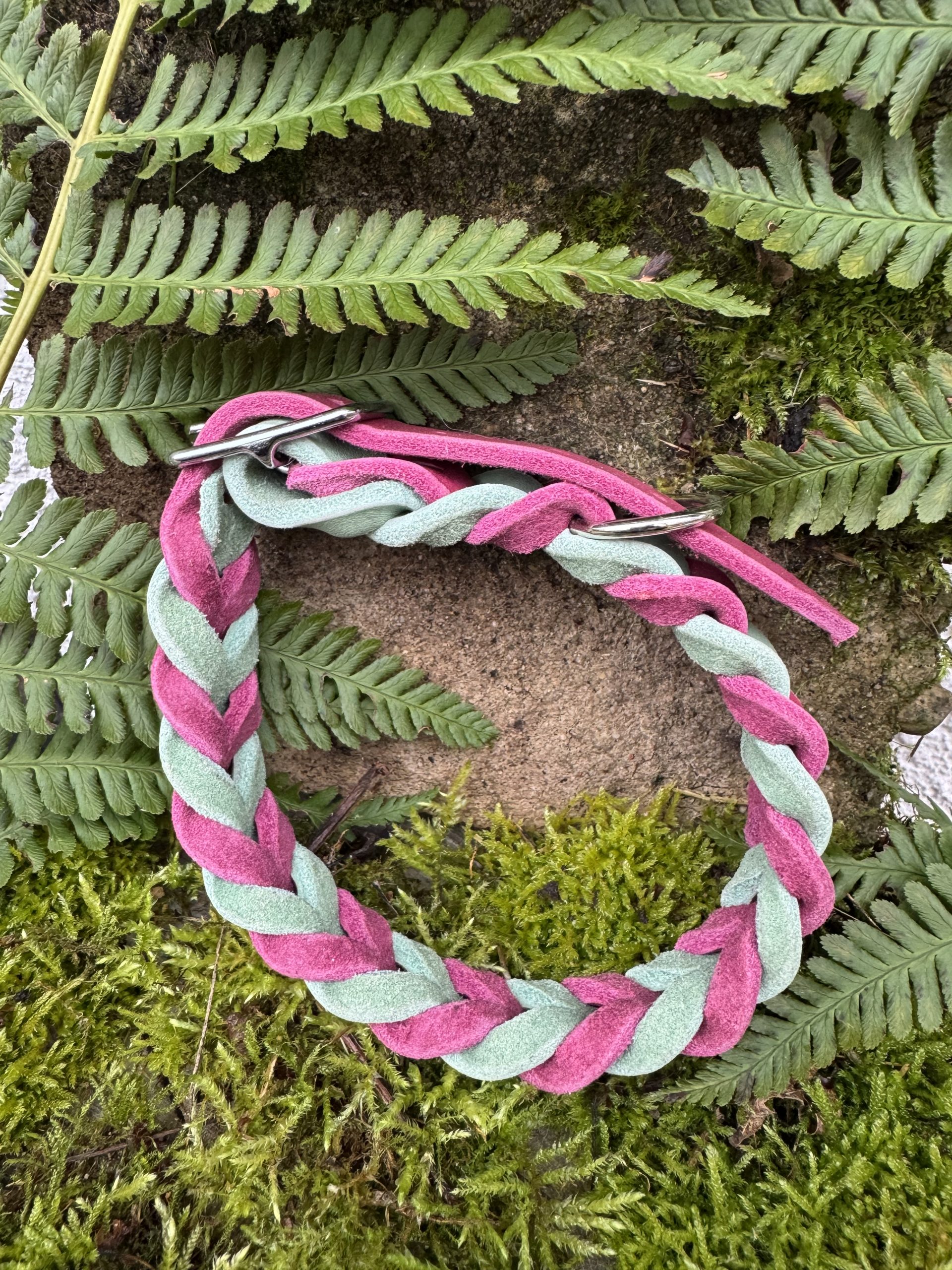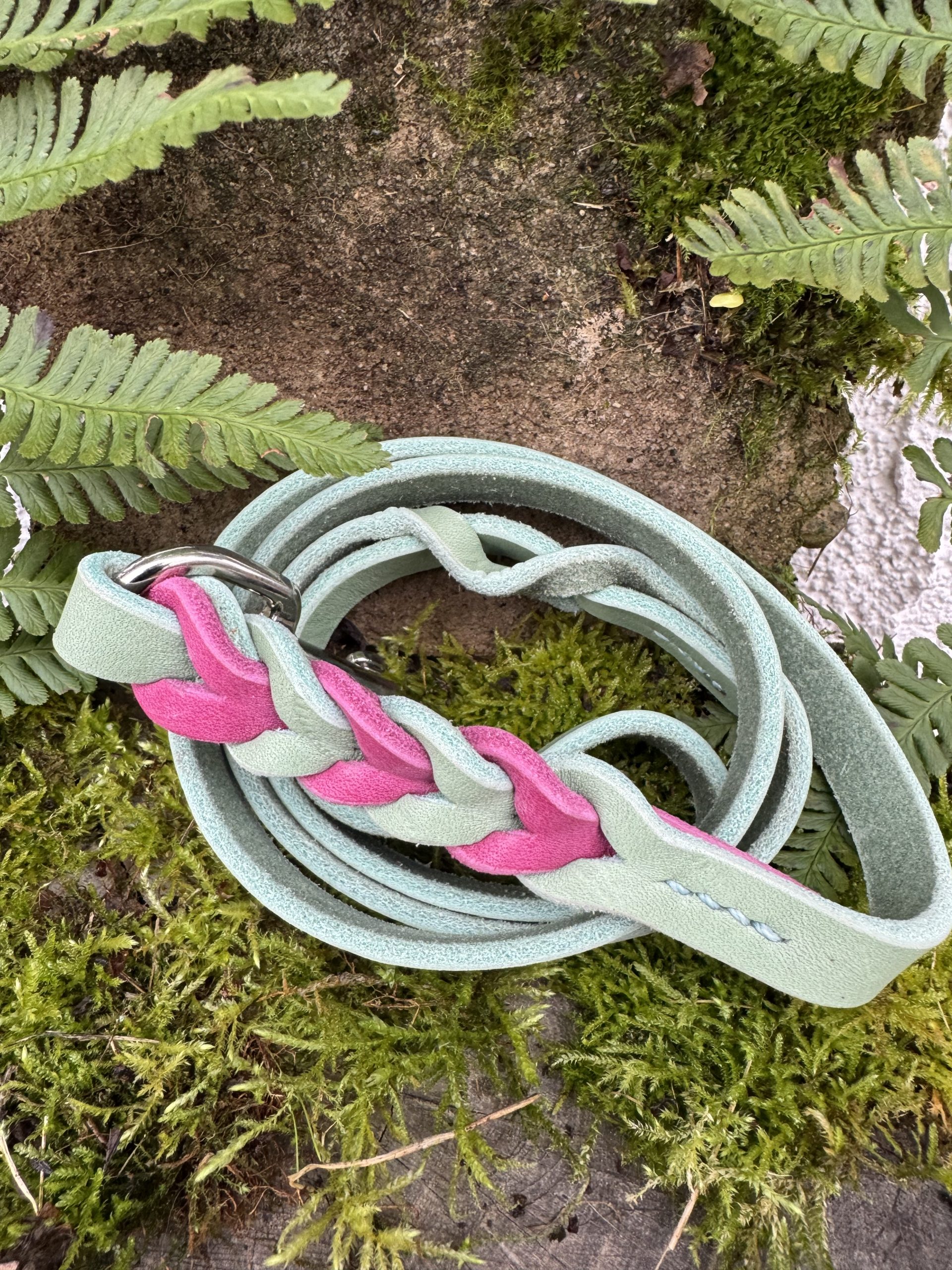 Handgemachtes Leinen-Halsband-Set aus wunderbar weichem Leder mit verstellbarem Halsband in wunderschönem mint-pink